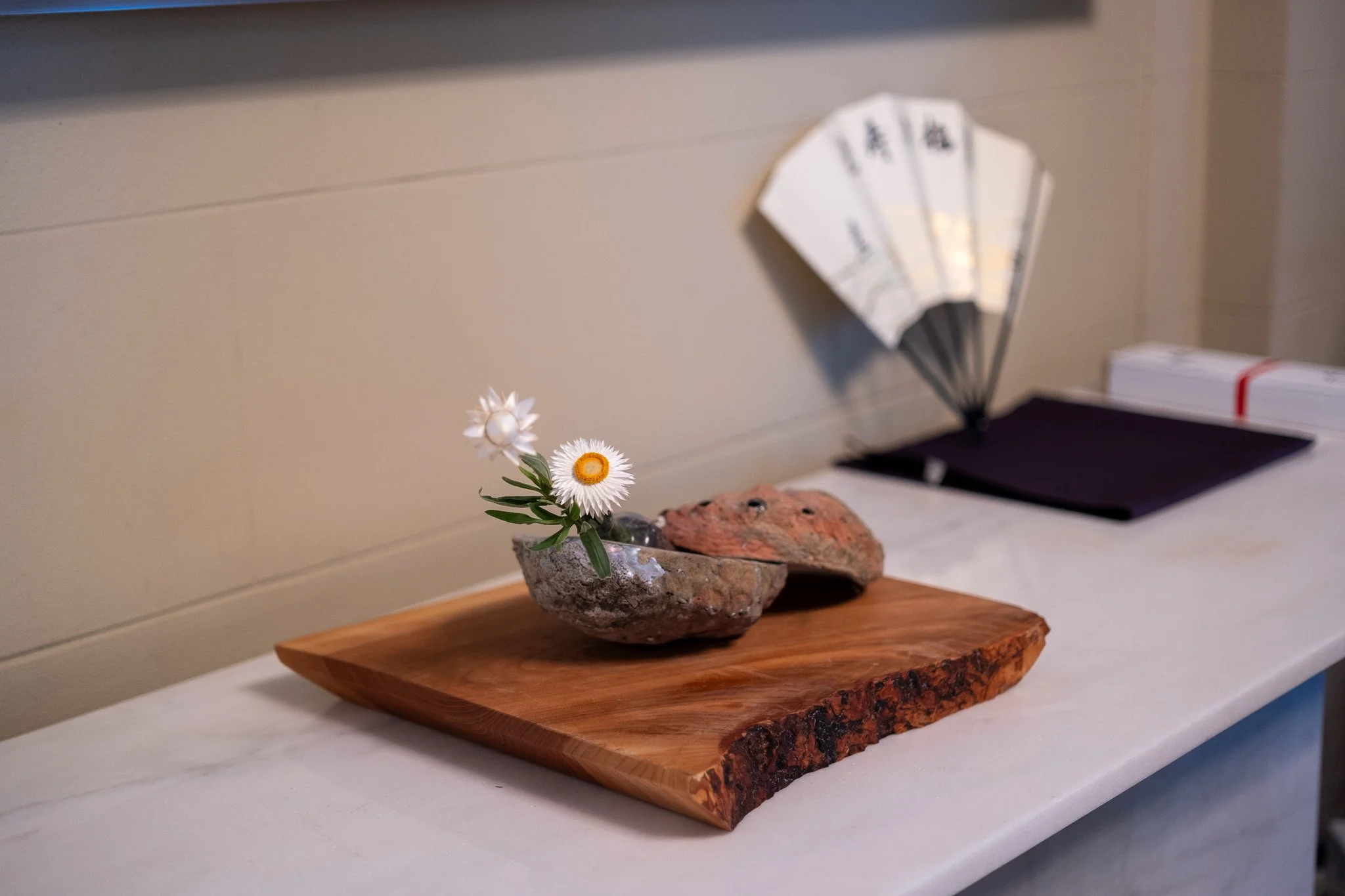 北加日米会の観桑庵内にある広間「臨和軒」での支部長席。