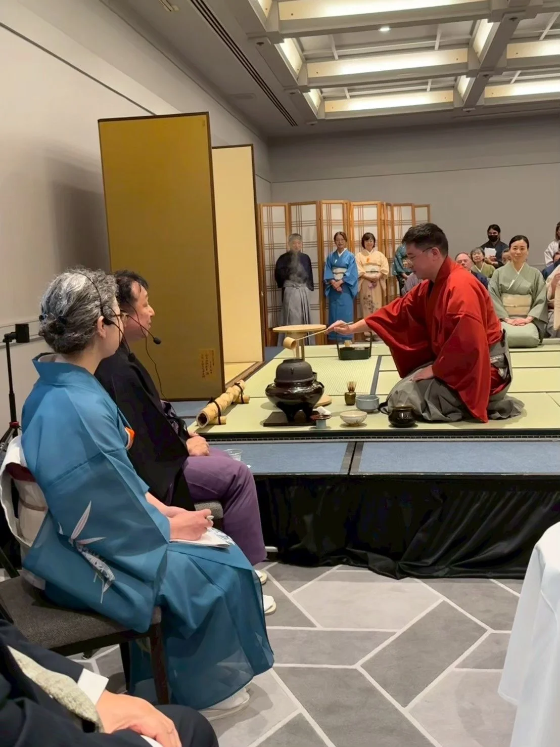 **今回の茶カブキでは、観覧席から見えやすいように、客の座る位置が通常の場合とは異なっております。